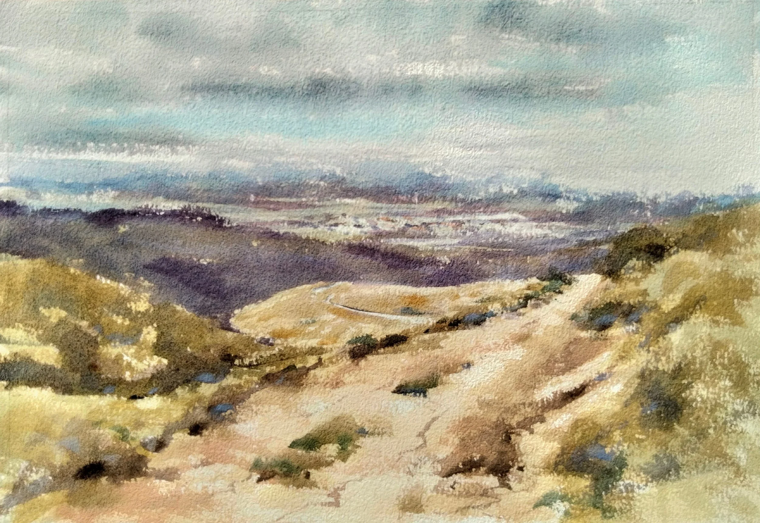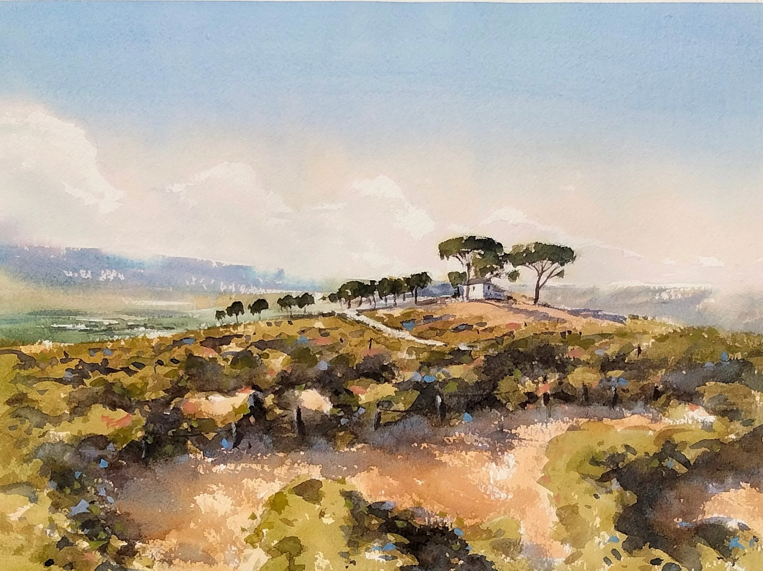 From August to November, 2022, I walked the paths of the Camino de Santiago from France across Spain and Portugal. I walked just over1300 kms, carrying my painting equipment amongst other possessions in my backpack. I made three pilgrimages to Santiago de Compostela on the Camino Frances (starting from St Jean Pied de Port, France), the Camino Portuguës (from Porto, Portugal) and the Camino Inglés (from Ferrol, Spain), as well as the Prolongación to Muxia on Spain’s Atlantic coast. I painted on these pilgrimages, stopping along the way to capture interesting and inspiring aspects of the journey. In painting en plein air, the emotions that surfaced on the journey inevitably coloured my perceptions and responses to the landscape. On return to Australia I continued to paint the camino from my sketches and reference photographs to form the body of work that is present here now. To walk the Camino de Santiago is a great privilege. The experience is a gift. I hope to walk it many more times, starting once again in May 2024.